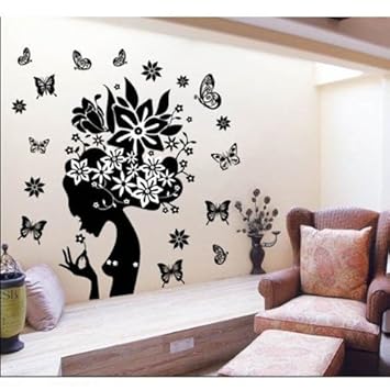 Mzy Llc Tm Pretty Butterfly Flower Fairy Girl Removable Pvc Wall Sticker Home Decor Decals